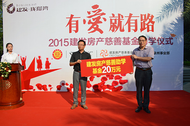 儀式現場,王懷鋒副總經理代表事業部發表致辭,傳達了建發房產對莘莘學子的關心和關懷,并表示將盡綿薄之力,幫助更多的泉州學子完成求學路。同時也希望受助學子們能把暫時的貧困作為精神財富,心懷感恩之心,感恩社會、感恩父母、感恩身邊所有的人,學會自力更生,用實際行動回報社會。為愛感恩,傳遞幸福。教育局領導也對建發房產的慈善活動表示極大的贊同和感謝。