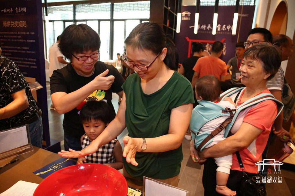 古代傳統(tǒng)的風(fēng)俗活動完美展現(xiàn),現(xiàn)場設(shè)置大氣風(fēng)雅的漢唐古裝體驗,來賓紛紛穿著漢服拍照留影,在新中式風(fēng)格的襯托下,仿佛一下子穿越回到了古代;新奇趣味的復(fù)古擊銅錢互動區(qū)域,排起長隊等候體驗,現(xiàn)場歡聲四起,精彩不停,驚喜不斷。嘉賓除了品鑒學(xué)習(xí)傳統(tǒng)文化外,完成游戲挑戰(zhàn)可獲取精美禮品,更可參與中秋博餅。幸運兒在現(xiàn)場嘉賓的掌聲與祝福中,將福運驚喜帶回家!
