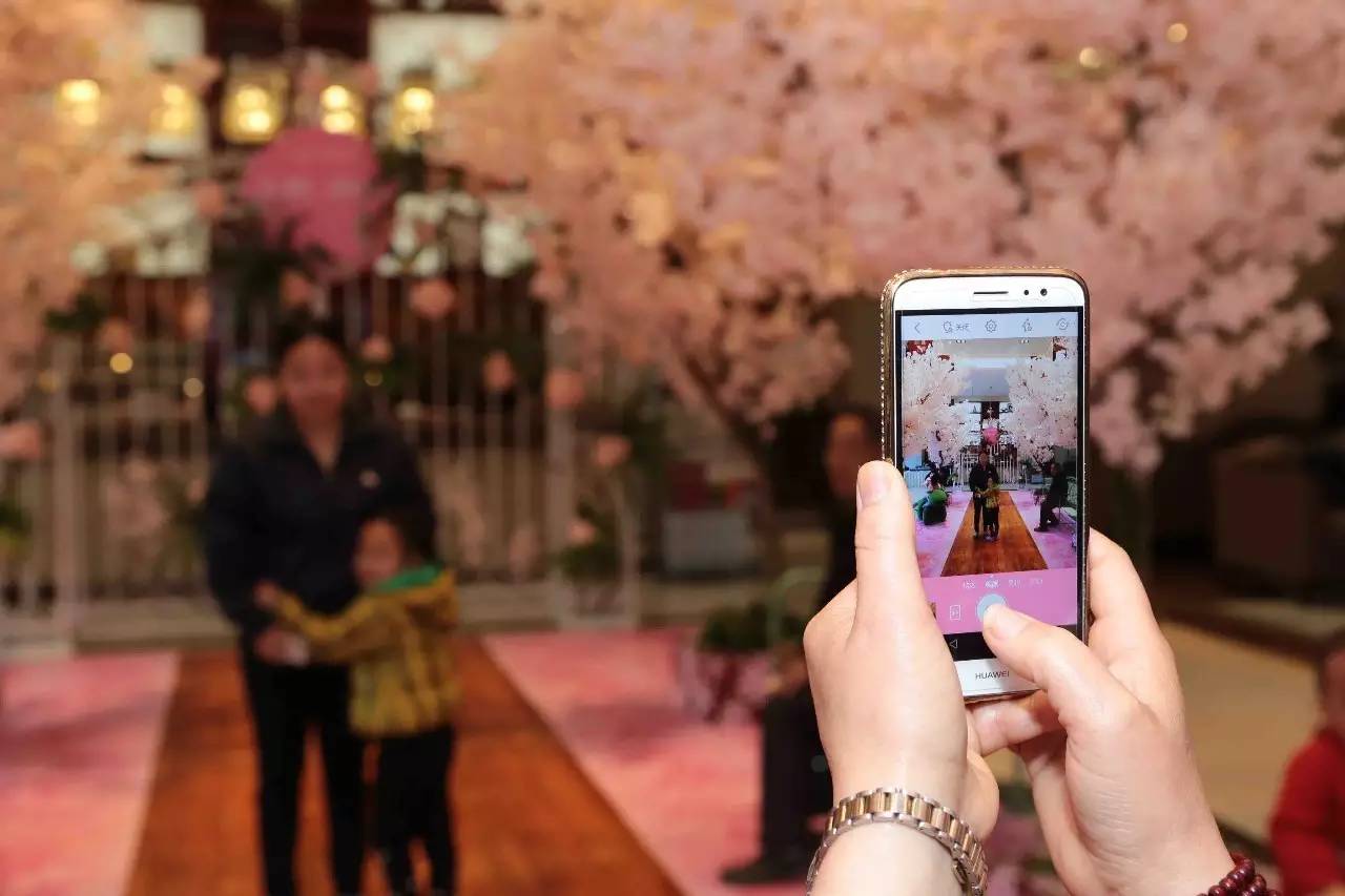 尚街熱鬧非凡,天悅售樓部更添幾許溫馨,精心布置的粉色櫻花大道,吸引了來訪者駐足拍照。