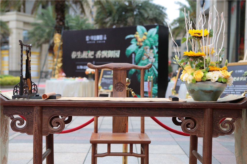 一踏進活動現場,一席古風雅韻撲面而來,中式木質桌作為簽到臺,搭配中式水墨元素桌旗,彰顯出東風典雅。院子作為背景,一棵玉蘭樹下,一位著古裝女子彈著手中琵琶,一曲春頌覓知音,羨煞旁人,好一派風雅。來賓爭相合影,親密感觸,定格這美好的瞬間。