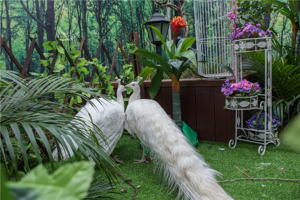 鳥中之王白孔雀、長腿鴕鳥、會說話的鷯哥、血玉金絲雀、鳳凰鳥、貴妃雞、珍珠雞……平時難見的珍稀鳥類,在半山御園園區(qū),一展身姿。或神秘、或高貴、或美艷、或可愛的身影,不斷的閃現(xiàn)在來賓面前,一種與稀有生命近距離接觸的興奮散逸開來,讓幸福難以言表。
