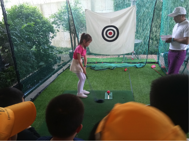 高爾夫運(yùn)動(dòng)以其高雅格調(diào)和非凡品位,成為近年來家長們培養(yǎng)孩子紳士風(fēng)度與健康體魄的重要運(yùn)動(dòng)之一。通過家長與孩子互動(dòng)的游戲形式,不僅讓孩子們盡情玩耍,也拉近了父母與孩子間的感情距離,讓百忙之中的父母體驗(yàn)到與孩子們相處的快樂時(shí)光。活動(dòng)開始后,由專業(yè)高爾夫教練為參與到現(xiàn)場(chǎng)活動(dòng)的孩子們講解高爾夫基本知識(shí)、禮儀及規(guī)則。現(xiàn)場(chǎng)教授小朋友推桿進(jìn)洞、高爾夫文化、高爾夫技術(shù)、高爾夫趣味比賽規(guī)則……開啟超贊的高爾夫之旅,而現(xiàn)場(chǎng)的家長們則在教練的指導(dǎo)下學(xué)習(xí)起規(guī)范鐵桿擊球要領(lǐng)。