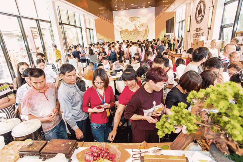 活動現(xiàn)場,神秘中式懸浮術(shù)亮相,古琴雅音對桃林,悠揚琴聲向到訪的客戶訴說著,從容、優(yōu)雅才是生活應(yīng)有的姿態(tài);精湛賞茶道表演讓人大開眼界,良朋圍坐品香茗幾盞聊一聊新中式生活的詩意盎然。
