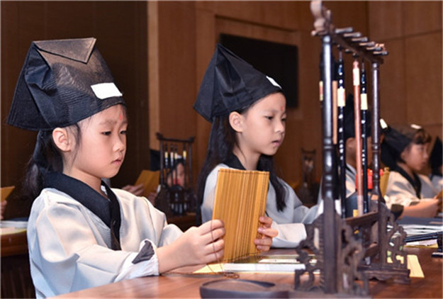 稚子身著青衿,魚貫而入,遵循古制,見師行禮。