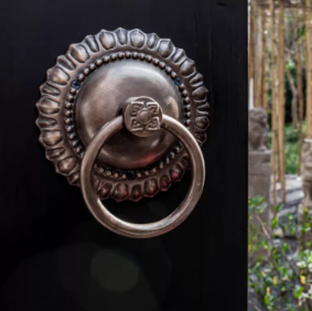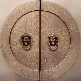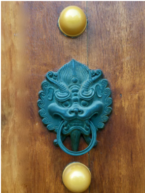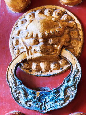 鋪首的造型在古代多種多樣,多以金屬冶制成獸首狀作為底座,安裝在大門(mén)上用以銜門(mén)環(huán)。環(huán)則作為主要的受力構(gòu)件,用來(lái)開(kāi)關(guān)大門(mén)或扣門(mén),集合實(shí)用性和裝飾性于一體。