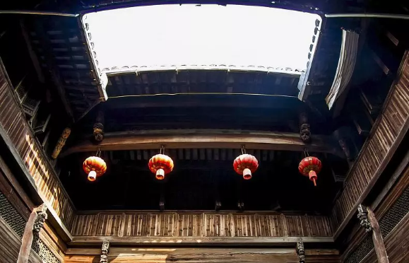 四水歸堂以傳統(tǒng)的“間”為基本單元,房屋開(kāi)間多為奇數(shù),每間面闊3至4米,進(jìn)深五檁到九檁,每檁1至1.5米,各間以廊相連,圍合成封閉式院落。