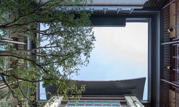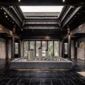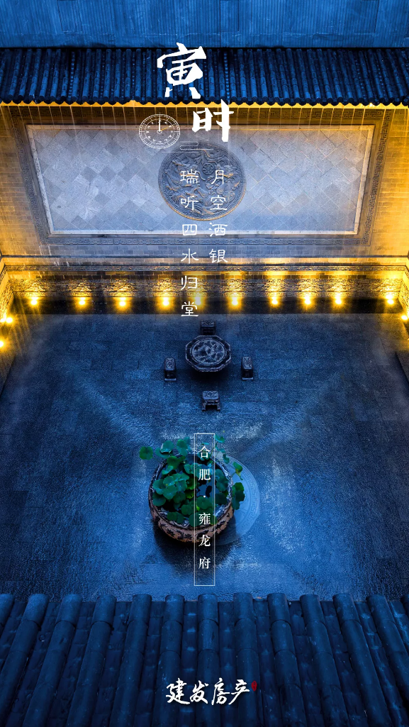 因?yàn)閲希惺浇ㄖ庞辛讼蛐牡牧α俊:戏视糊埜瑩碛薪òl(fā)房產(chǎn)首個(gè)實(shí)景展示的四水歸堂。晴時(shí)陽(yáng)光自天井瀉入堂前,如同“灑金”;雨時(shí)雨水從四面落入天井,恍若“流銀”,寓意水聚天心、天人合一。