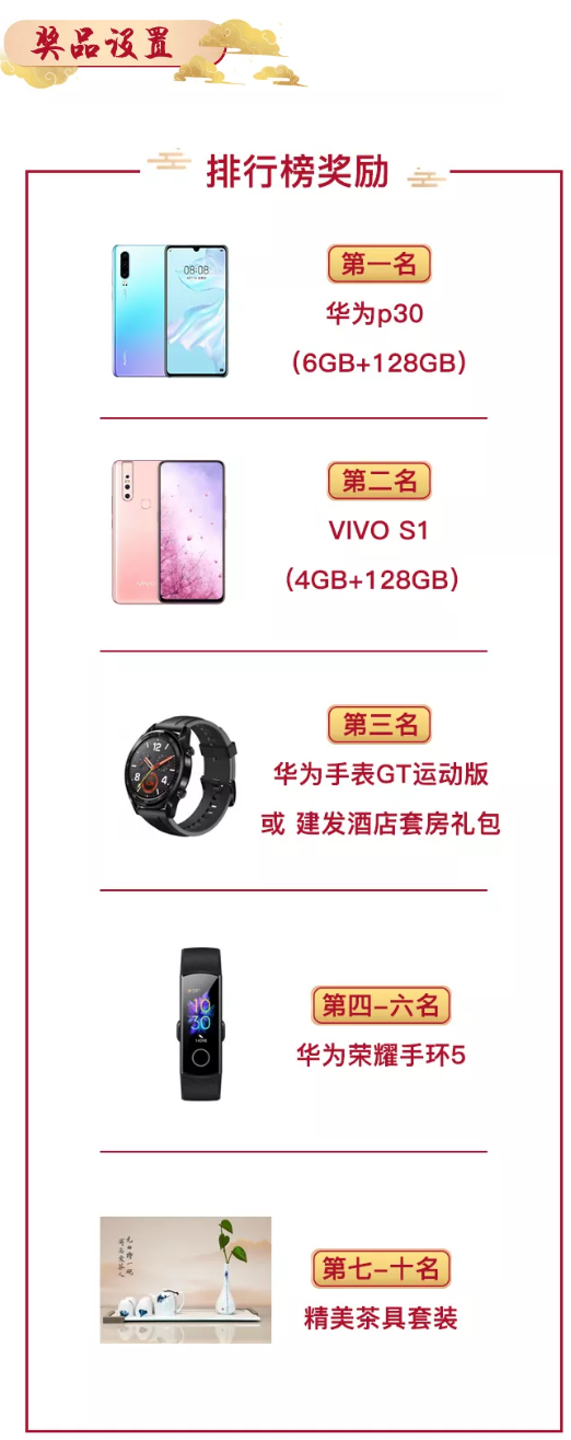 ▲ 在游戲截止時,成功完成拼圖數最高的前十名玩家可獲得對應的排行榜獎勵,第一名為華為p30(6GB+128GB)手機。