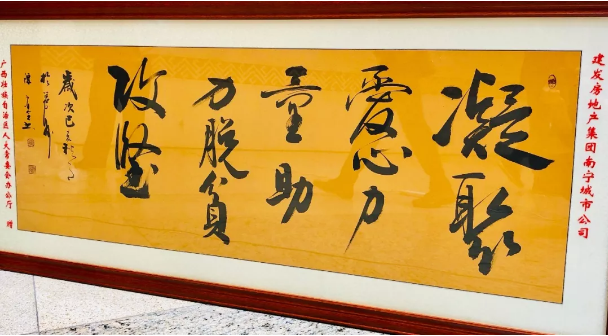 活動現場,主辦方授予建發房地產集團華南區域南寧城市公司愛心牌匾,同時廣西著名書法家當場贈予書法作品。