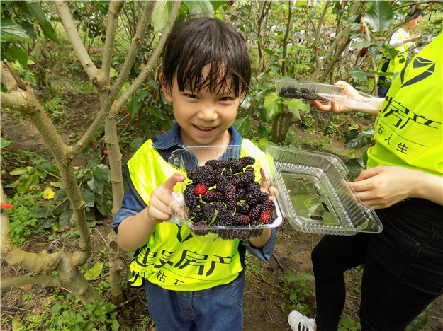 業主們在奪寶奇兵游戲后,跟隨隊長走進了桑葚采摘園,一棵棵桑葚樹樹大枝高,果實累累。在樹葉的掩映下,桑葚果隱隱露出了蹤影。大人們邊品嘗邊感受采摘的樂趣,小朋友們也很高興的體驗著農家樂的感覺,頓時采摘園成了忙碌且幸福的海洋。