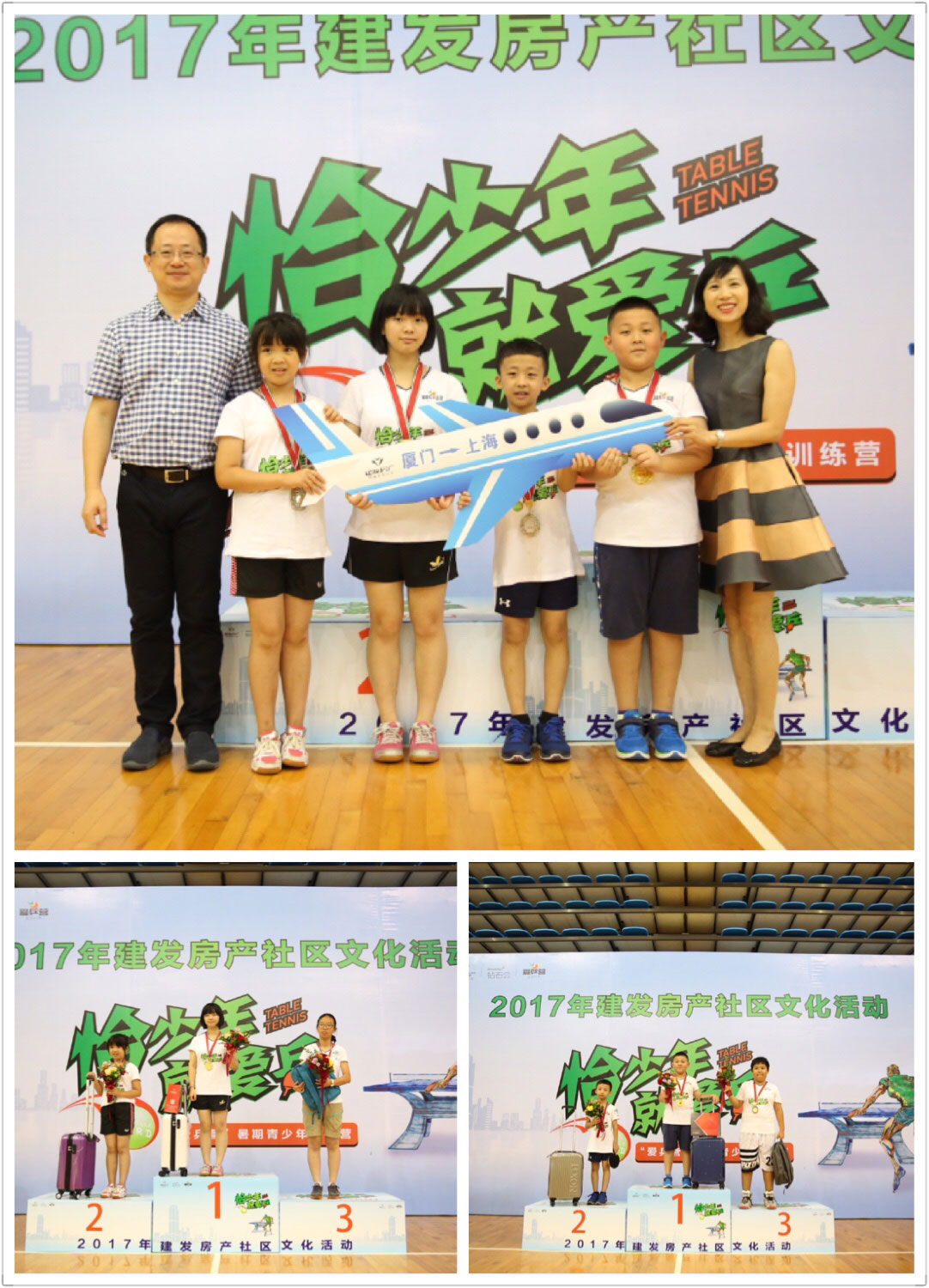 經過一個上午的激烈角逐,廈門區域男單冠亞軍分別為中央灣區珊瑚海許瑞圣、半山御景胡恩杰小朋友;女單冠亞軍分別是來自央璽項目張怡、新家園童樂妍小朋友。他們將代表廈門賽區參加全國業主乒乓球總決賽。
