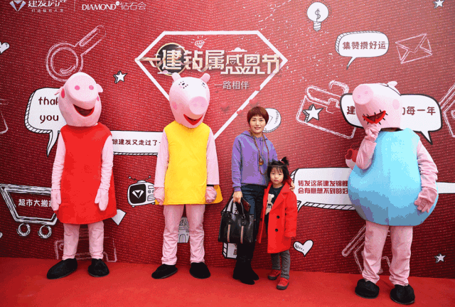 大家在與小豬佩奇合影的瞬間,